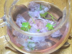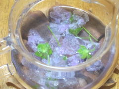 ポットに花を入れてお湯を注いだ 元の色です。淡いブルーです。 ![]() |