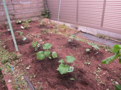 6月12日 かなり遅れて植え付け 完了です。キュウリの場所を変更。 ![]() |