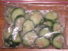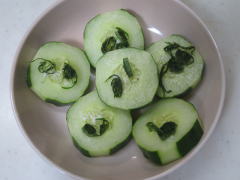 キュウリのぬか漬けを作っています。 麹をキュウリのスライスに振りかけて ![]() |