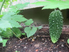 7月5日 ゴーヤが実り出しました。 苗を植えてから21日目でまだ小さい ![]() |