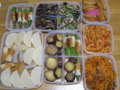 筑前には鳥を入れるのですが、今年 無理なので高野豆腐と百合根です ![]() |