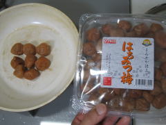 ハチミツ梅 これをフライパンの上で 表裏を焼いて、焼き梅干しにします ![]() |