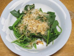 ワサビ菜の食べ方の提案です。 軽く湯通しして、シラスと合えます。 ![]() |