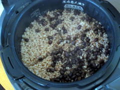 | この袋に、無農薬玄米4合、小豆、 塩が入っていて、さっと洗うだけ。 ![]() |