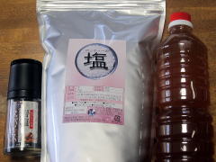 | ホッティーの塩と、細かく摺る容器、 梅酢です。玄米に塩が合います。 ![]() |