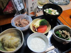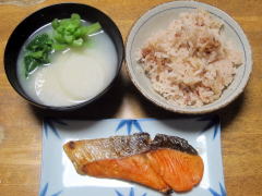 | 発芽酵素玄米と、大根の粕汁、 焼鮭、頂いた大吟醸を。酔いました ![]() |