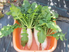 | 2月14日 大根の初収穫です。 今年は小ぶりです。遅く蒔いたから ![]() |
