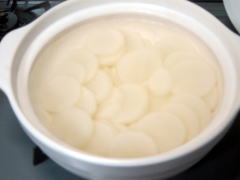 大根を輪切りにして、酒粕を入れて、 土鍋でコトコト、炊きました。香り良し ![]() |