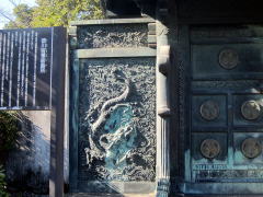 徳川将軍家の墓の前です。鋳抜門 という、龍が描かれた鋳物製です。 ![]() |