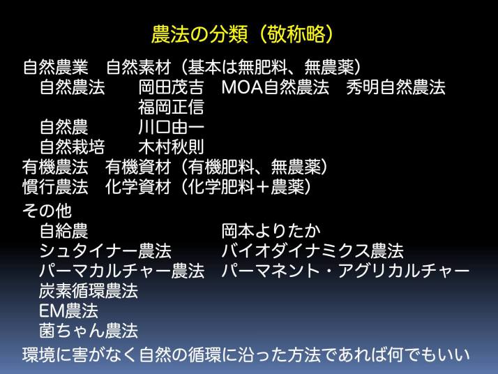 有機や自然農法の分類です。 こうみると、結構試した気がします。 |